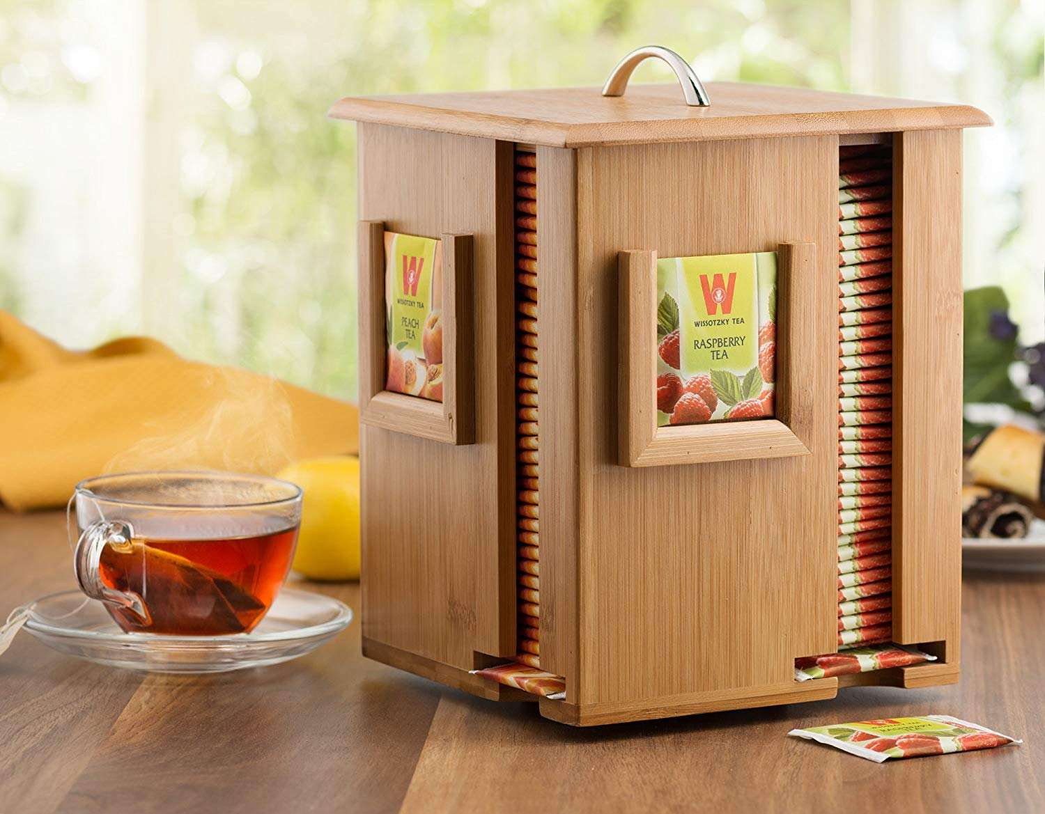 360-degree rotating multi-functional tea bag and coffee bag storage box